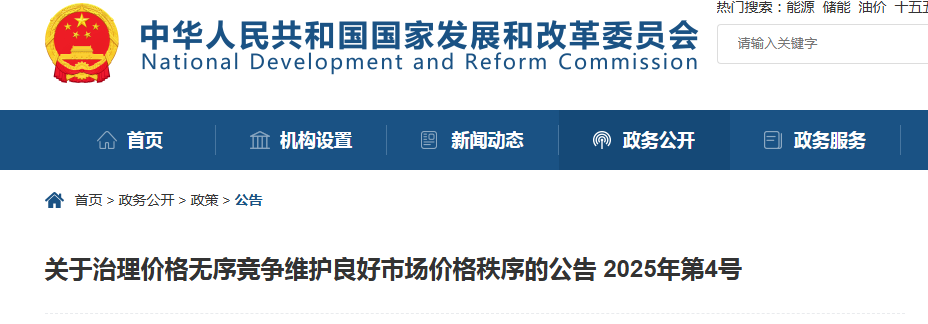 为贯彻中央财经委员会第六次会议精神,落实《关于治理价格无序竞争 维护良好市场价格秩序的公告》(国家发展改革委 市场监管总局公告2025年第4号)有关要求,11月24日,国家发展改革委会同有关部门及相关行业协会召开会议,研究制定价格无序竞争成本认定标准等相关工作。