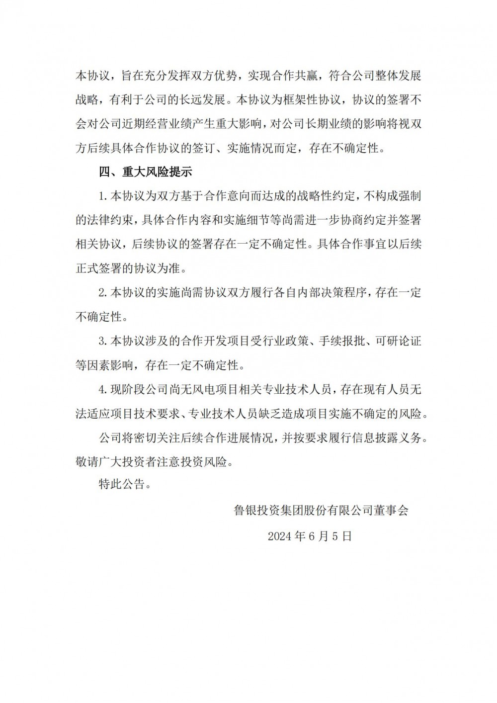 据电力家了解到,6月5日晚间,鲁银投资发布鲁银投资关于签订框架合作协议的公告。