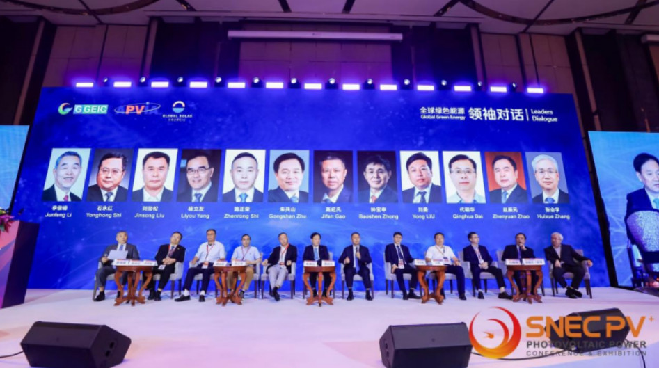 6月11日,SNEC 2024同期高峰论坛“第十七届全球绿色能源领袖对话”在上海举行。隆基绿能董事长钟宝申受邀参加“中国绿色低碳能源发展探索与对外合作”圆桌对话,和与会嘉宾就行业高质量发展、技术创新等话题深入研讨。