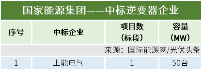 本统计周期,上能电气位列中标榜第二名,中标国家能源集团、长江绿色能源投资、电建、华能等企业6个项目(标段),确定中标容量750MW。
