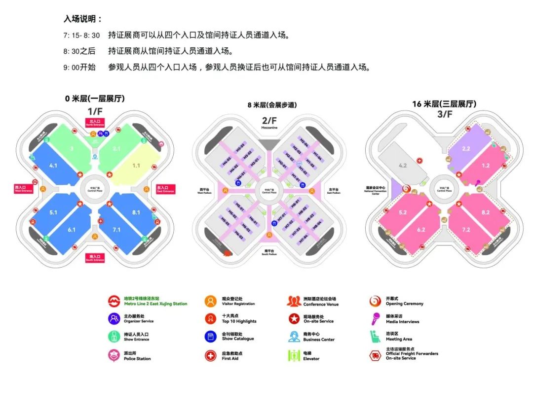 早上7:00-9:30在虹桥火车站/虹桥机场T2航站楼(接送点)往展馆东广场运送参展/参观人员。