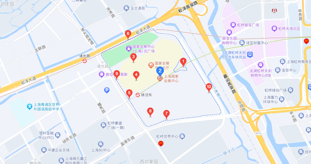 下午2:30-18:30在北广场大巴停车区,接送参展/参观人群往虹桥火车场/虹桥机场T2航站楼(接送点)方向。