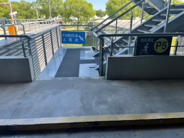 路线:电梯到M1夹层,出来往P5网约车上客点方向走,到达P5大巴停车场。
