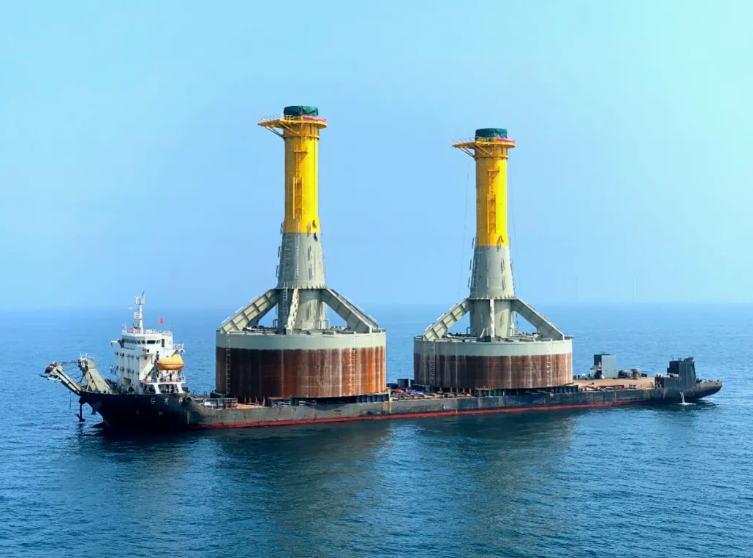 设计出国内水深最深的嵌岩承台基础,实现深水条件下斜桩嵌岩工法的突破,解决本场址在复杂地质条件下,抢装期时船机资源紧缺难题。