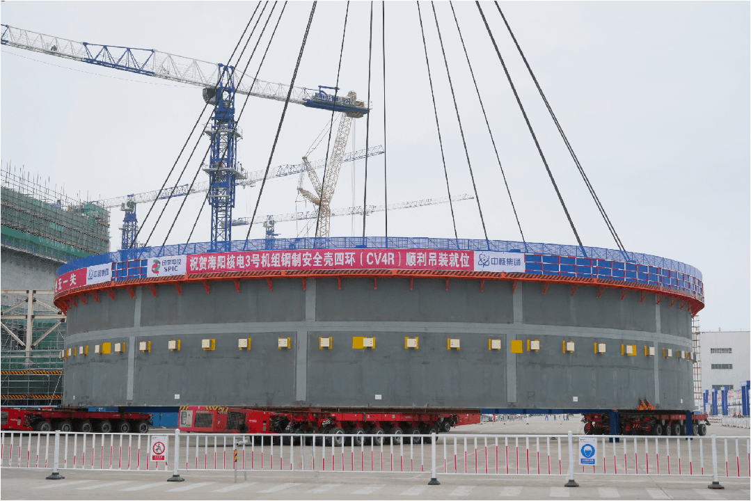 海阳核电3号核岛钢制安全壳筒体四环吊装就位