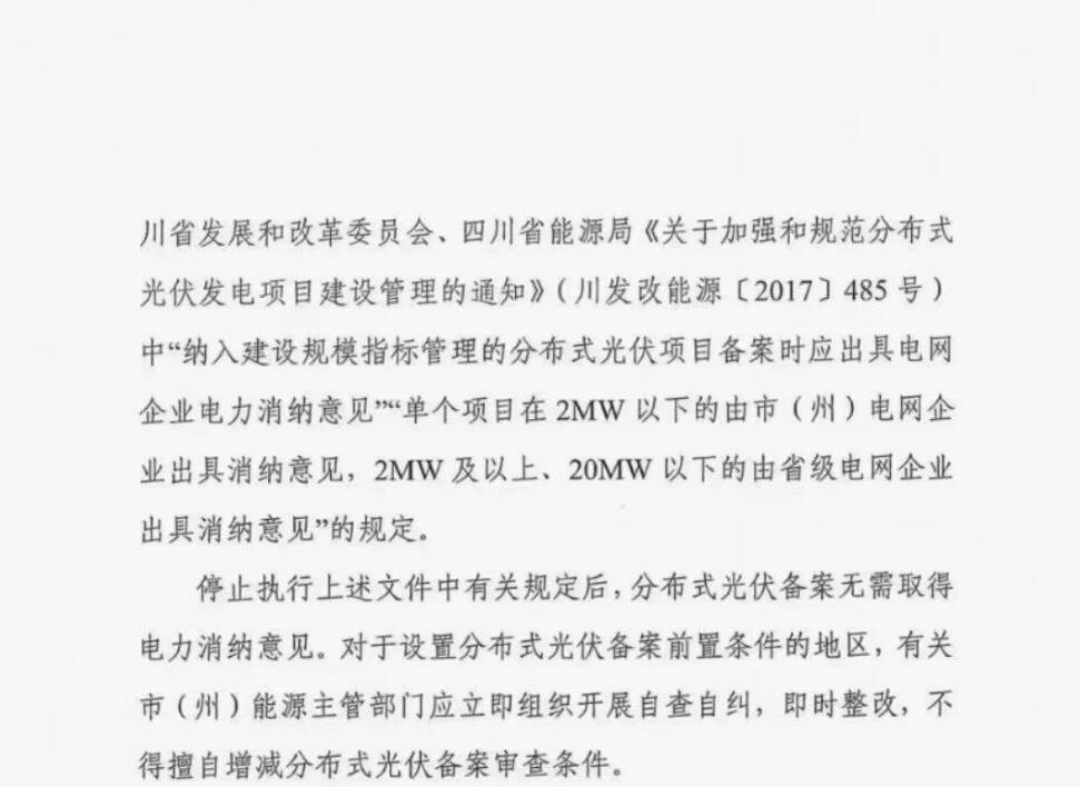 四川分布式光伏备案无需取得电力消纳意见