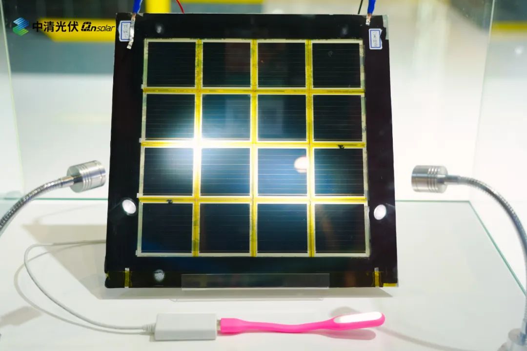本次SNEC重磅发布的刚性钙钛矿电池,由中清光伏Qnsolar与华彩光能共同研发,采用自主核心工艺构成核心产业化解决方案,推动钙钛矿效率与稳定性提升。拥有复合金属电极,内外联合封装,全无机电荷传输层优化等核心技术,通过华彩云大实验室小试实证,最大输出功率8W,转化率超过20%。钙世高效凸显中清光伏Qnsolar在光伏技术领域钛无止境的探索。
