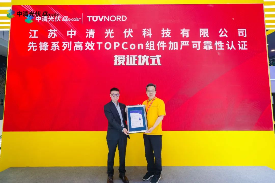 在展会同期举行的集中授证仪式上,中清光伏Qnsolar还荣获由TV北德颁发的先锋系列高效TOPCon组件及加严检测证书、国际知名的第三方检测认证机构SGS颁发的光伏组件差异化应用耐候性(深蓝海洋环境条件)认证技术规范证书、国内权威的国家光伏质检中心与华能清能院共同颁发的差异化应用耐候性国品优选检测证书。彰显中清产业拥有突出的安全性、可靠性、差异化耐候性,在国内外备受认可。