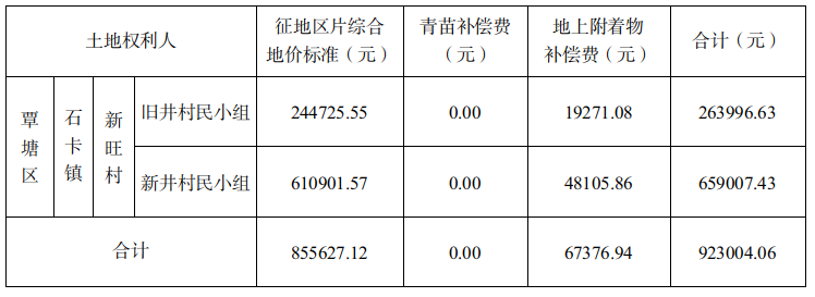 广西贵港覃塘区2000MW多能互补新能源发电项目南区域光伏项目一期(升压站)建设用地,需征收贵港市覃塘区石卡镇新旺村民委员会的集体土地15.006亩。根据《广西壮族自治区人民政府关于广西贵港覃塘区2000MW多能互补新能源发电项目南区域光伏项目一期(升压站)建设用地的批复》(桂政土批函〔2024〕133号),经实地核实,按照《贵港市人民政府关于做好新一轮征地区片综合地价实施工作的通知》(贵政发〔2023〕3号)和《贵港市人民政府关于印发贵港市本级新一轮征地青苗和地上附着物补偿标准的通知》(贵政规〔2023〕1号)的有关规定,拟订《广西贵港覃塘区2000MW多能互补新能源发电项目南区域光伏项目一期(升压站)建设用地征收集体土地补偿安置方案》如下: