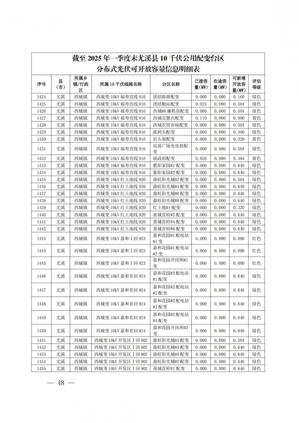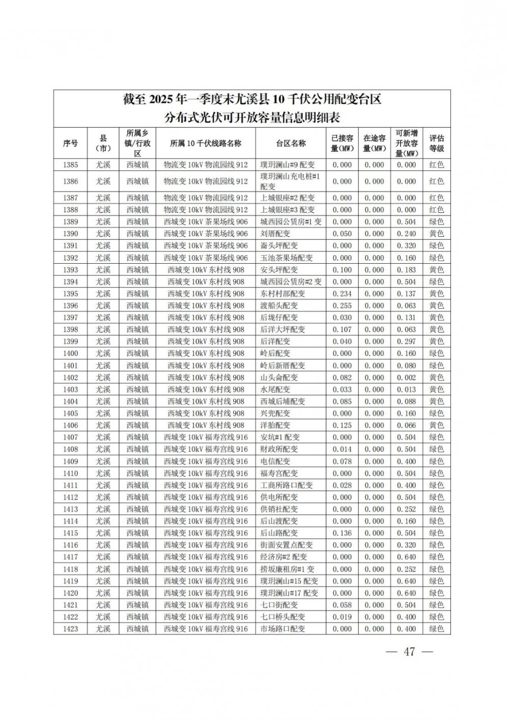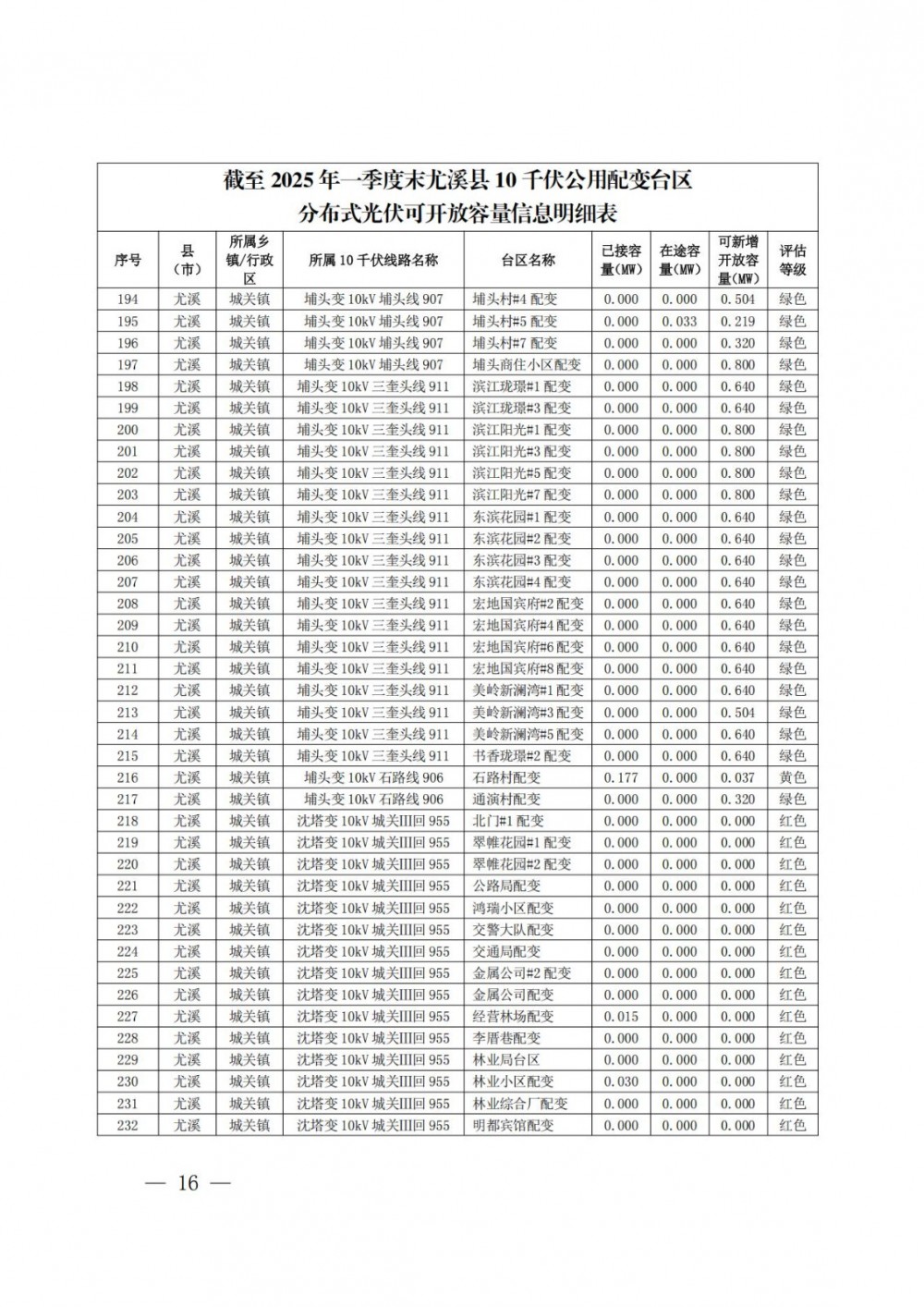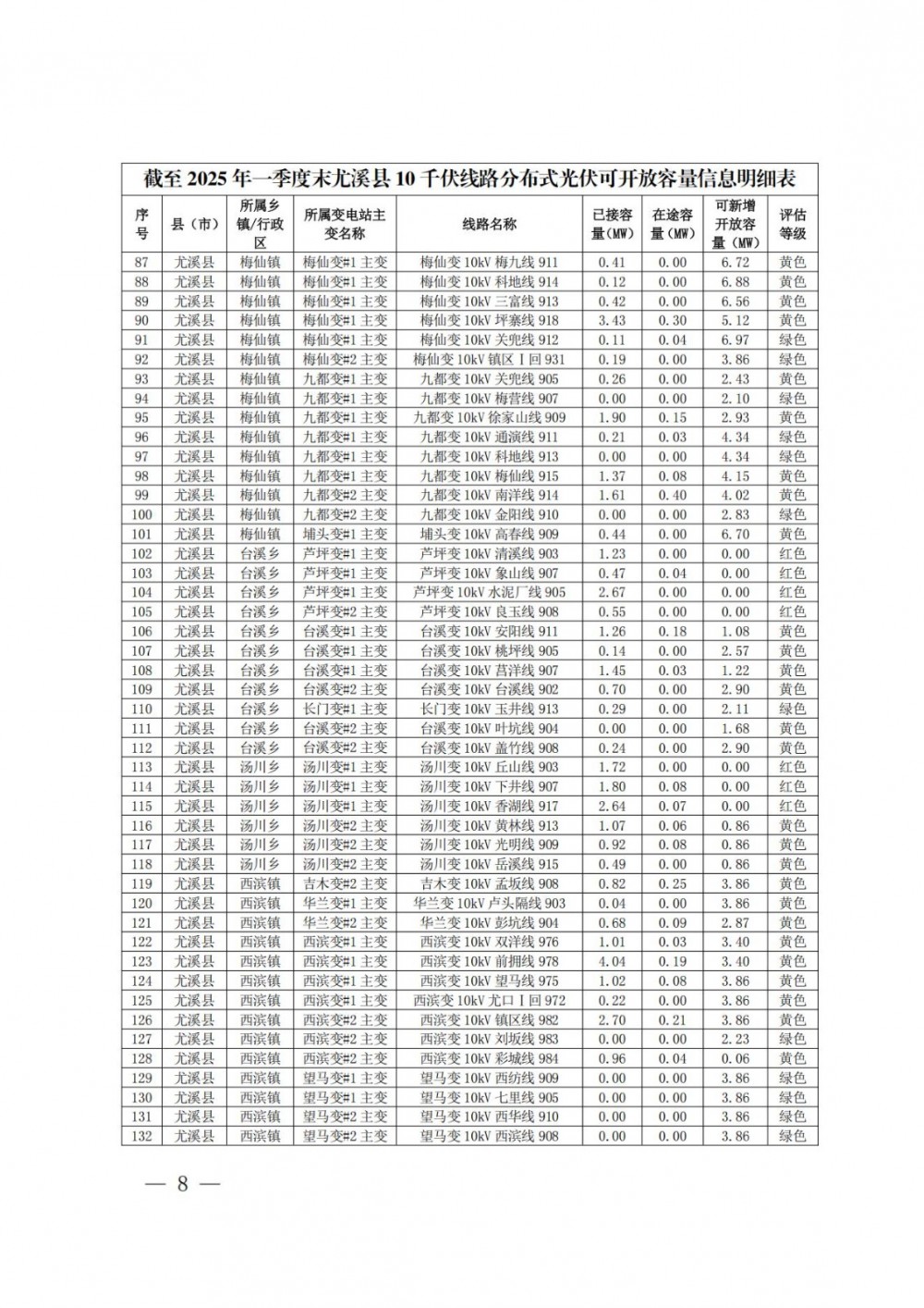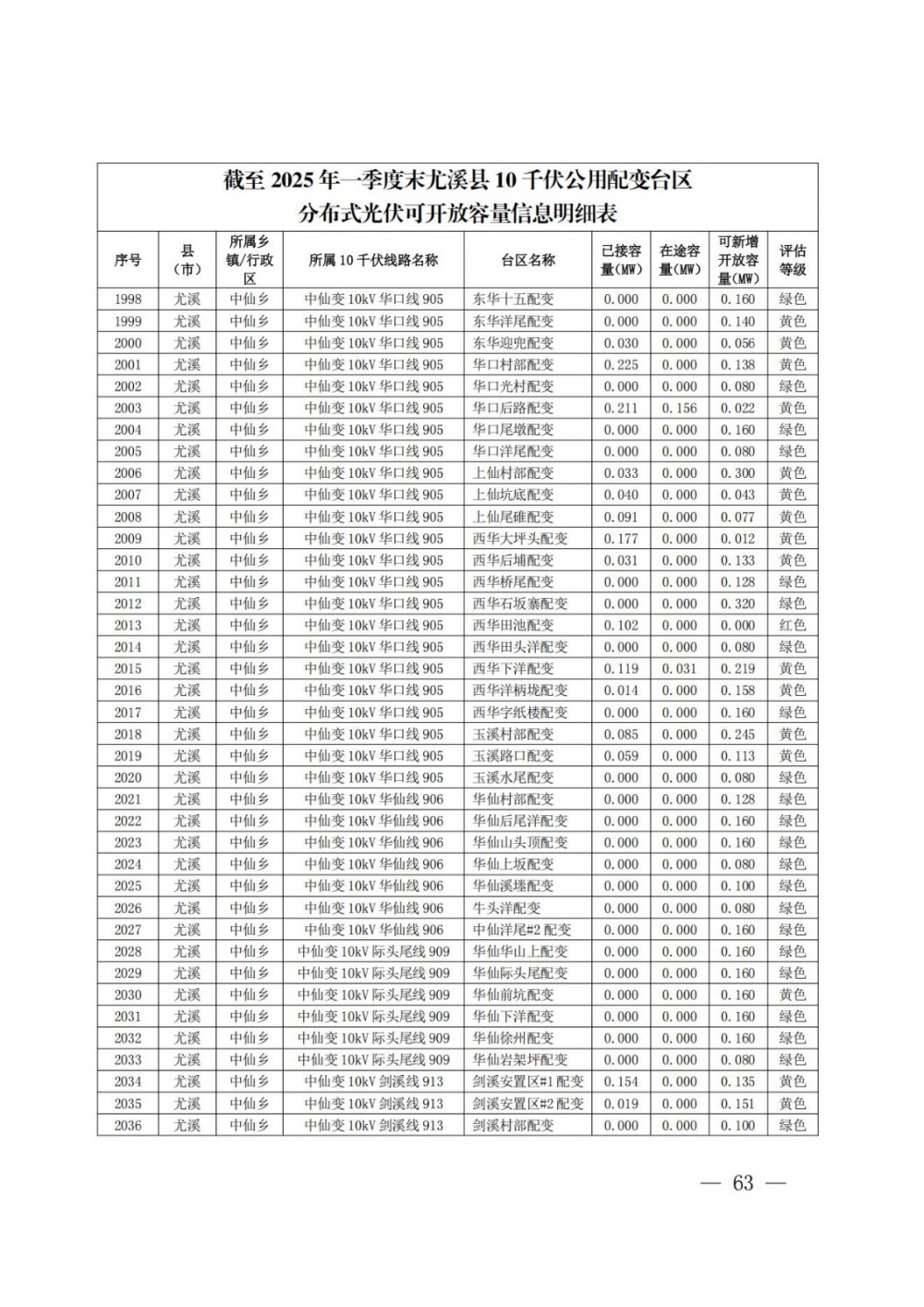 文件表示,国网尤溪县供电公司对分布式光伏接入电网承载力进行评估测算,截至2025年第一季度末尤溪县分布式光伏已接入容量210.45兆瓦,在途容量9.87兆瓦,可新增开放容量为21.61兆瓦。