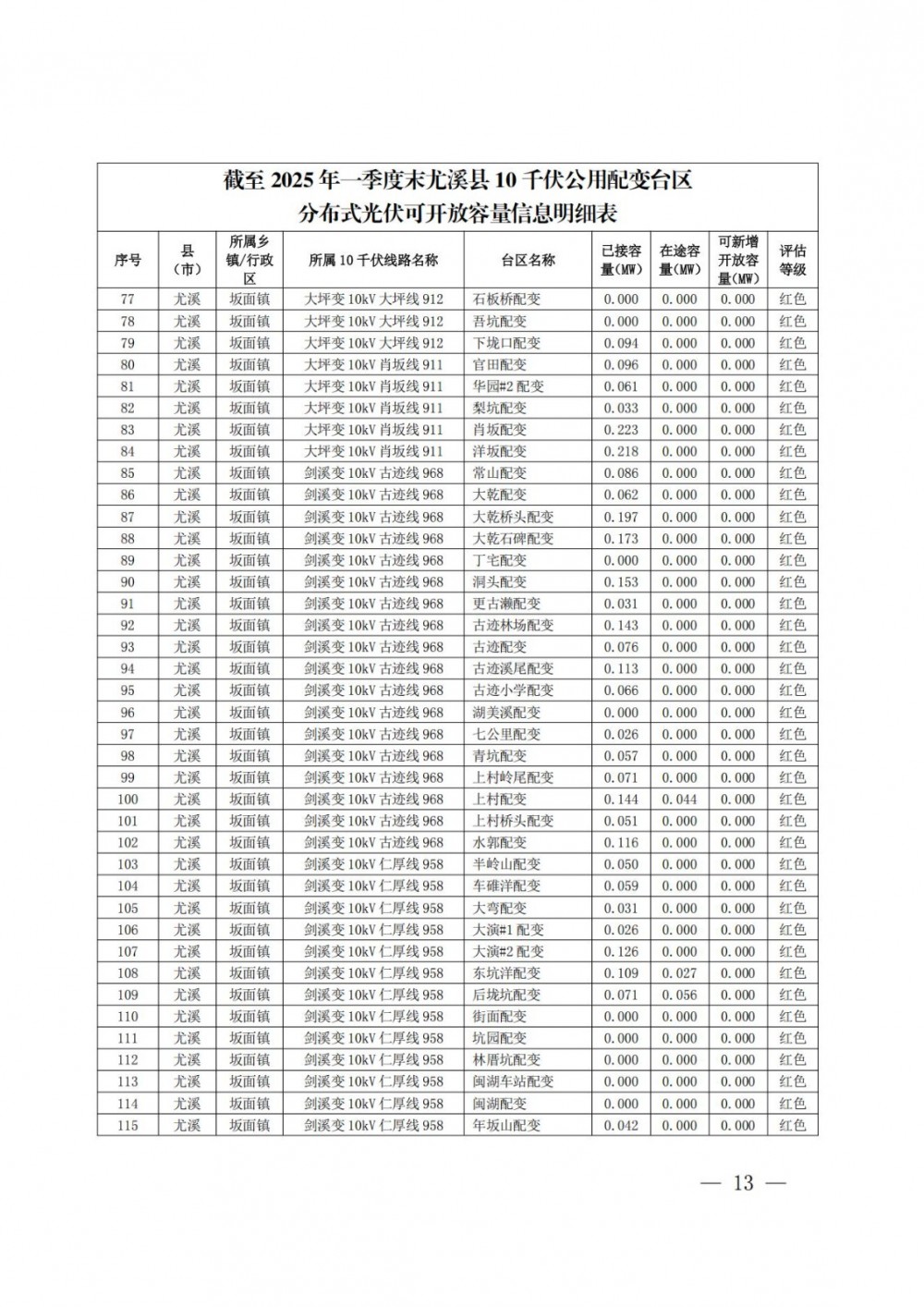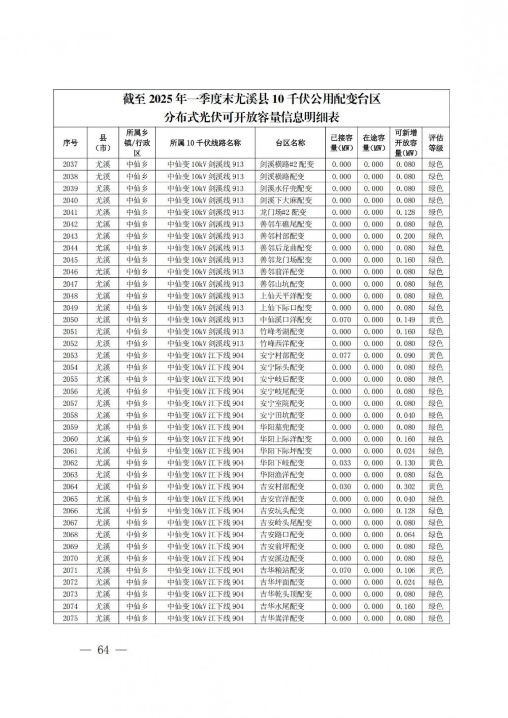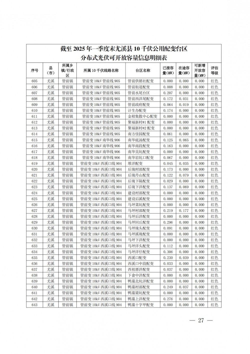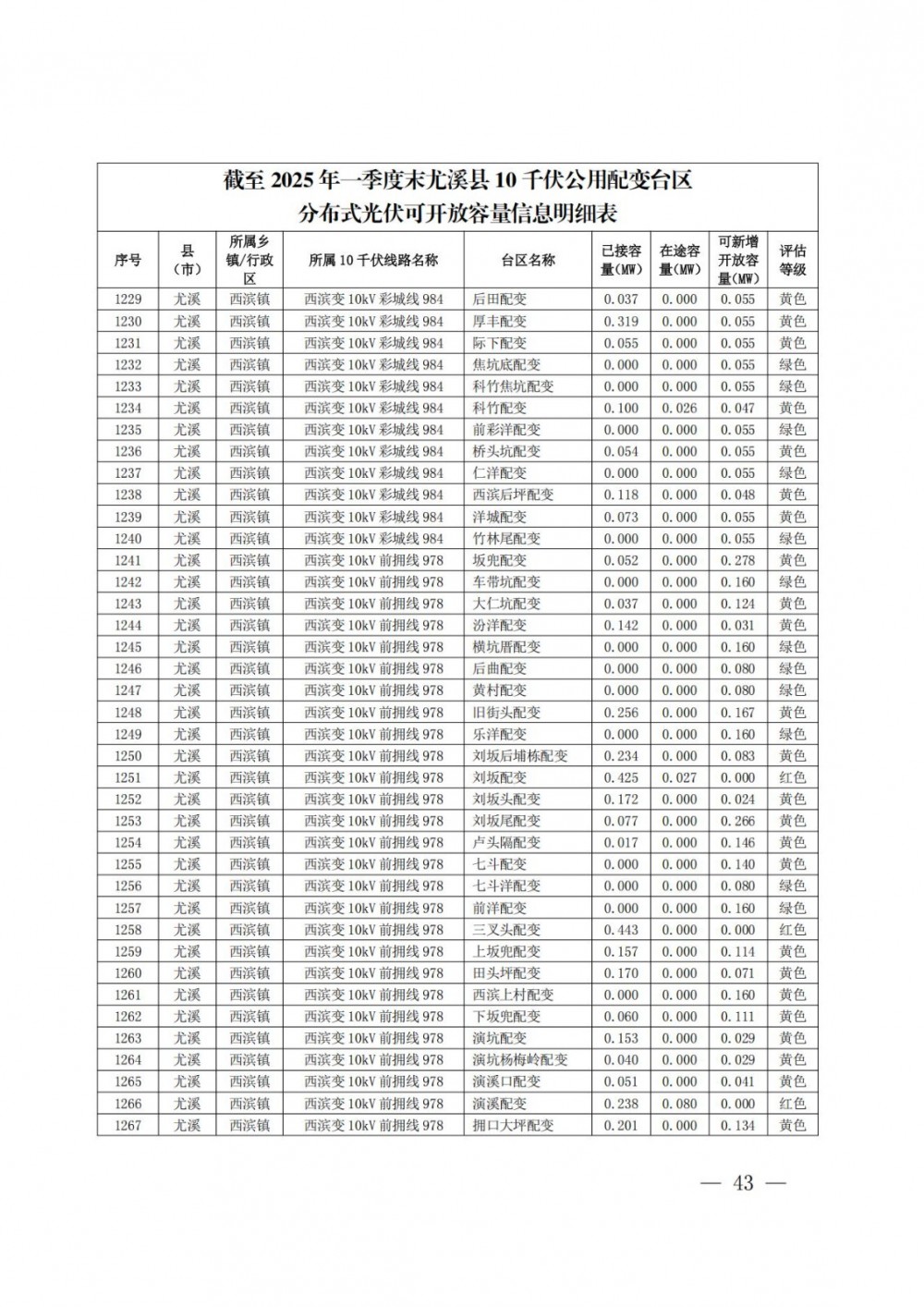 文件表示,国网尤溪县供电公司对分布式光伏接入电网承载力进行评估测算,截至2025年第一季度末尤溪县分布式光伏已接入容量210.45兆瓦,在途容量9.87兆瓦,可新增开放容量为21.61兆瓦。