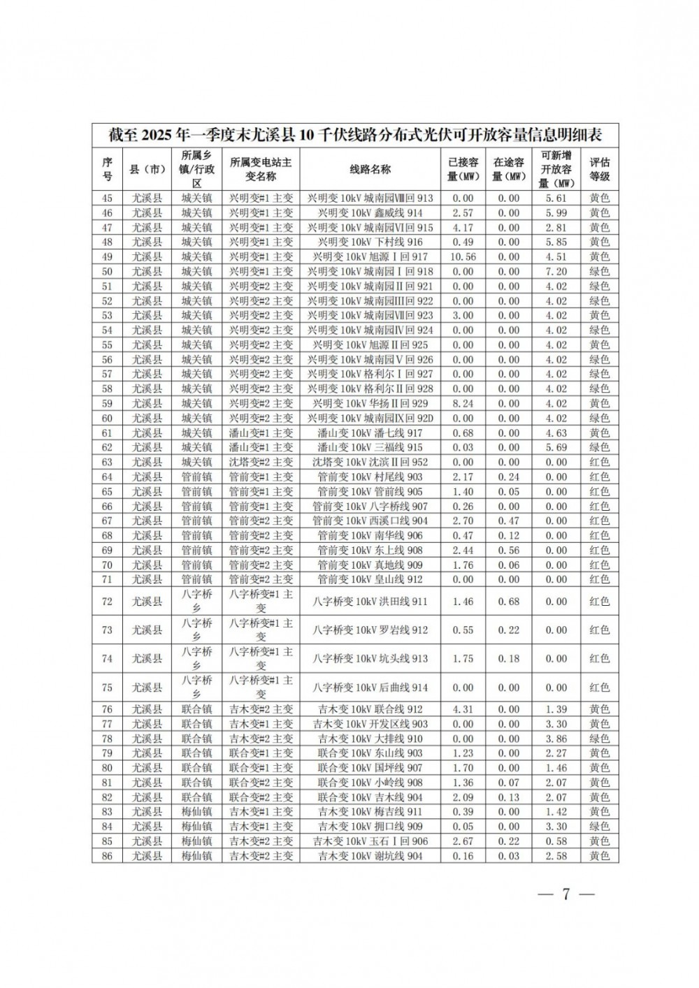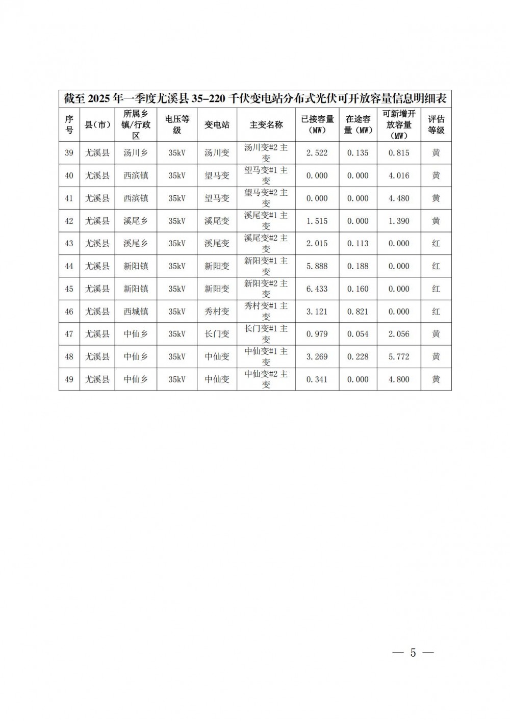 附件:国网福建省电力有限公司尤溪县供电公司关于报送尤溪县2025年第一季度分布式光伏接入电网承载力信息的函(尤电函〔2025〕3号).pdf