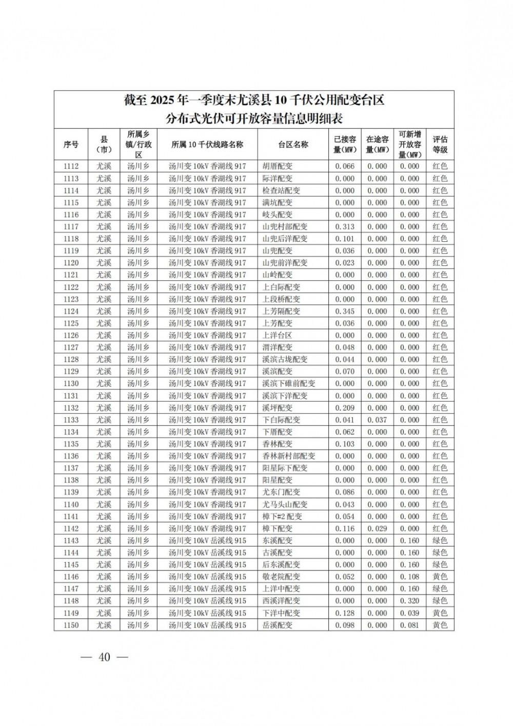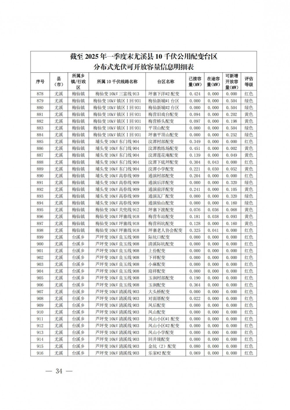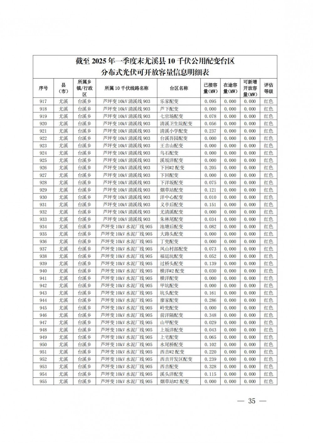 4月21日,福建三明尤溪县发展和改革局公布尤溪县2025年第一季度末分布式光伏接入电网承载力信息。