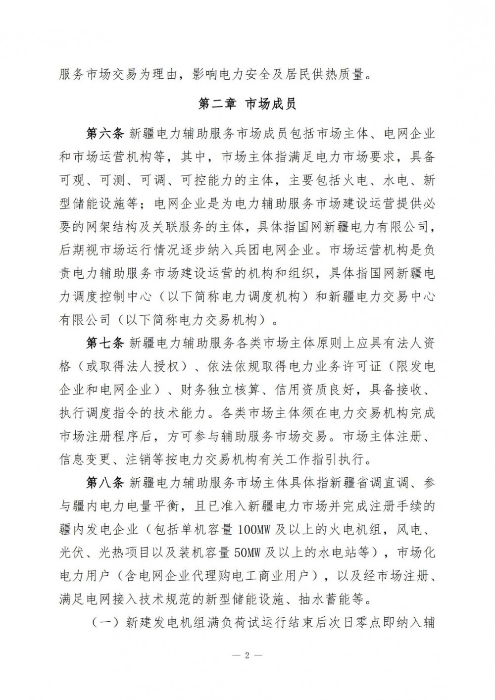 文件明确,本规则适用于新疆电力辅助服务市场交易,新疆电力辅助服务市场所有成员必须遵守本规则。新疆电力辅助服务市场主体具体指新疆省调直调、参与疆内电力电量平衡,且已准入新疆电力市场并完成注册手续的疆内发电企业(包括单机容量 100MW 及以上的火电机组,风电、光伏、光热项目以及装机容量50MW及以上的水电站等),市场化电力用户(含电网企业代理购电工商业用户),以及经市场注册、满足电网接入技术规范的新型储能设施、抽水蓄能等。