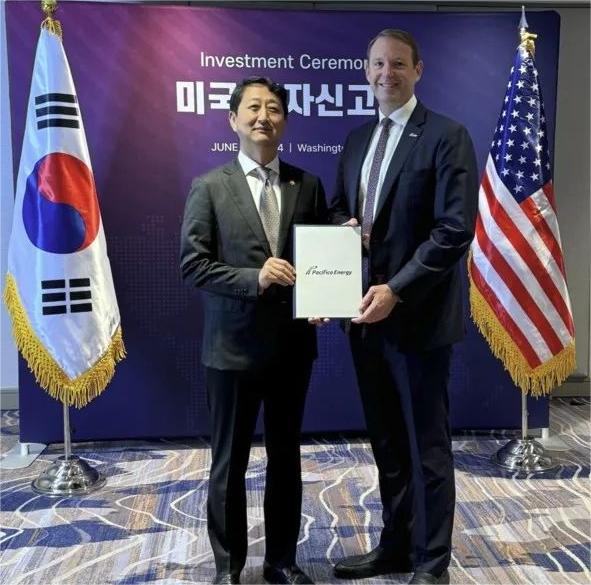 6月26日,太平洋能源公司在美国首都华盛顿举行的投资申报仪式上正式确认,将对韩国数千亿韩元,并向韩国产业通商资源部提交了投资申请。此次确认的投资额将全部用于开发建设鸣梁海上风电项目。