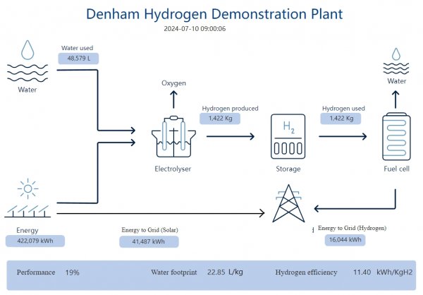 该仪表可以实时看到德纳姆氢气示范厂生产的能源。它基于可再生电力和提高系统安全性和可靠性的赋能技术(如储能)的贡献。