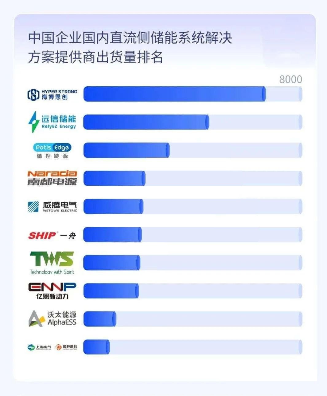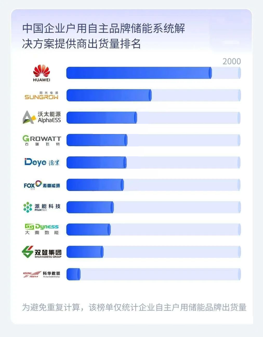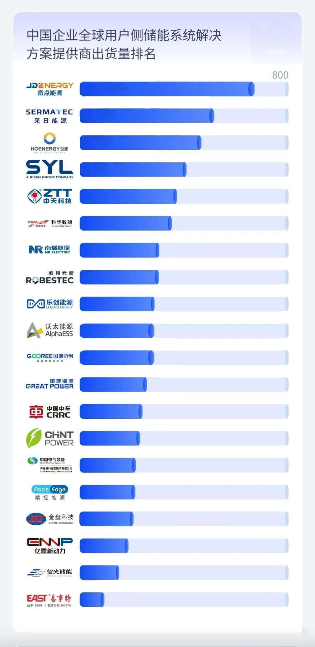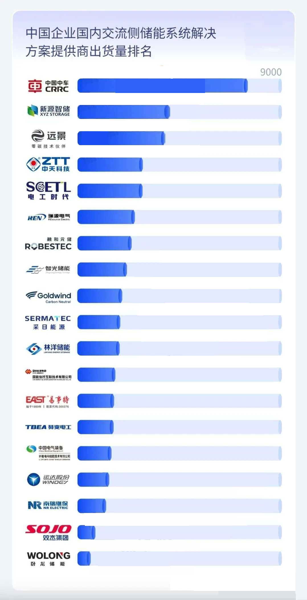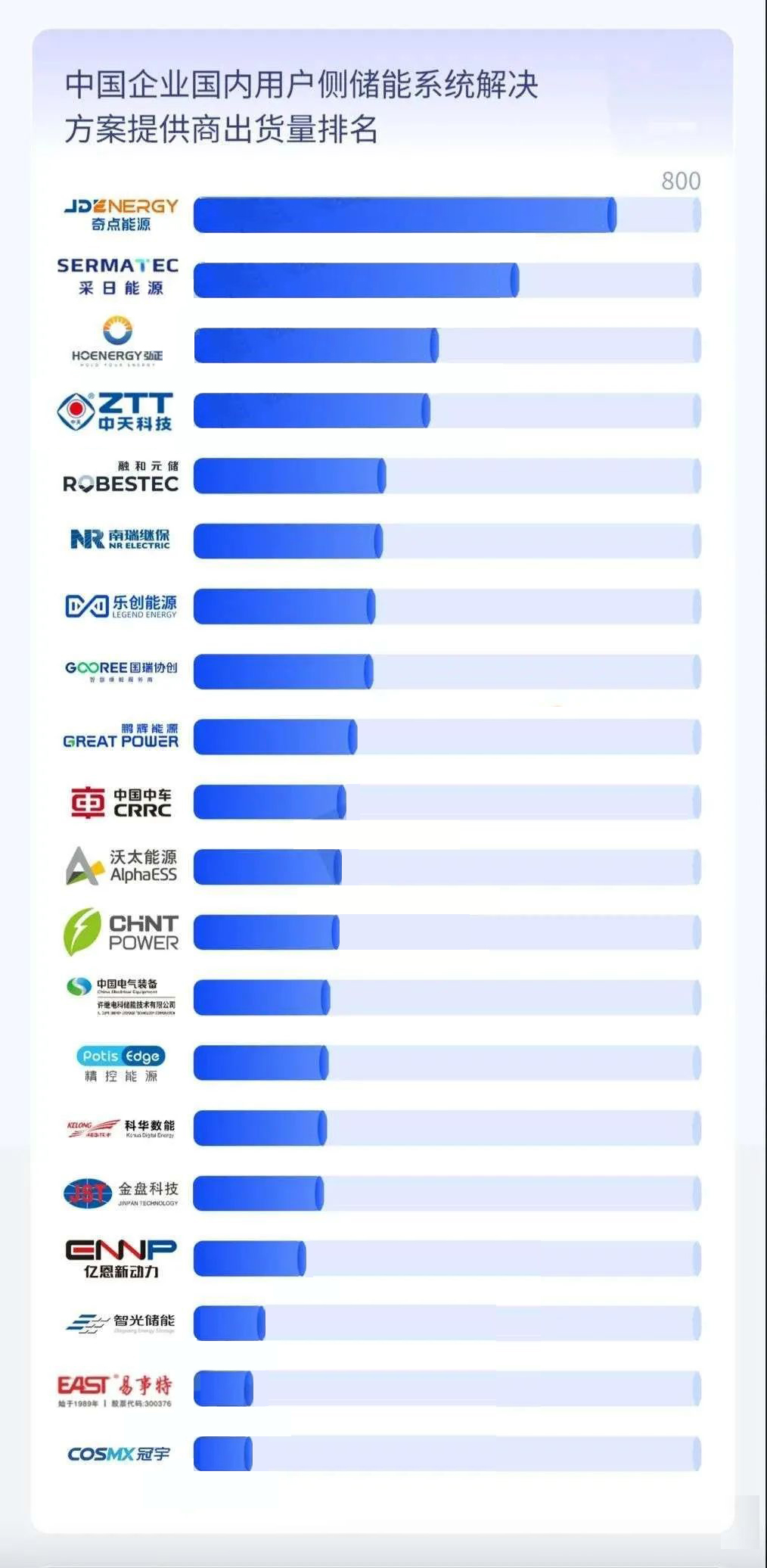 中国企业国内用户侧储能系统解决方案提供商出货量排名