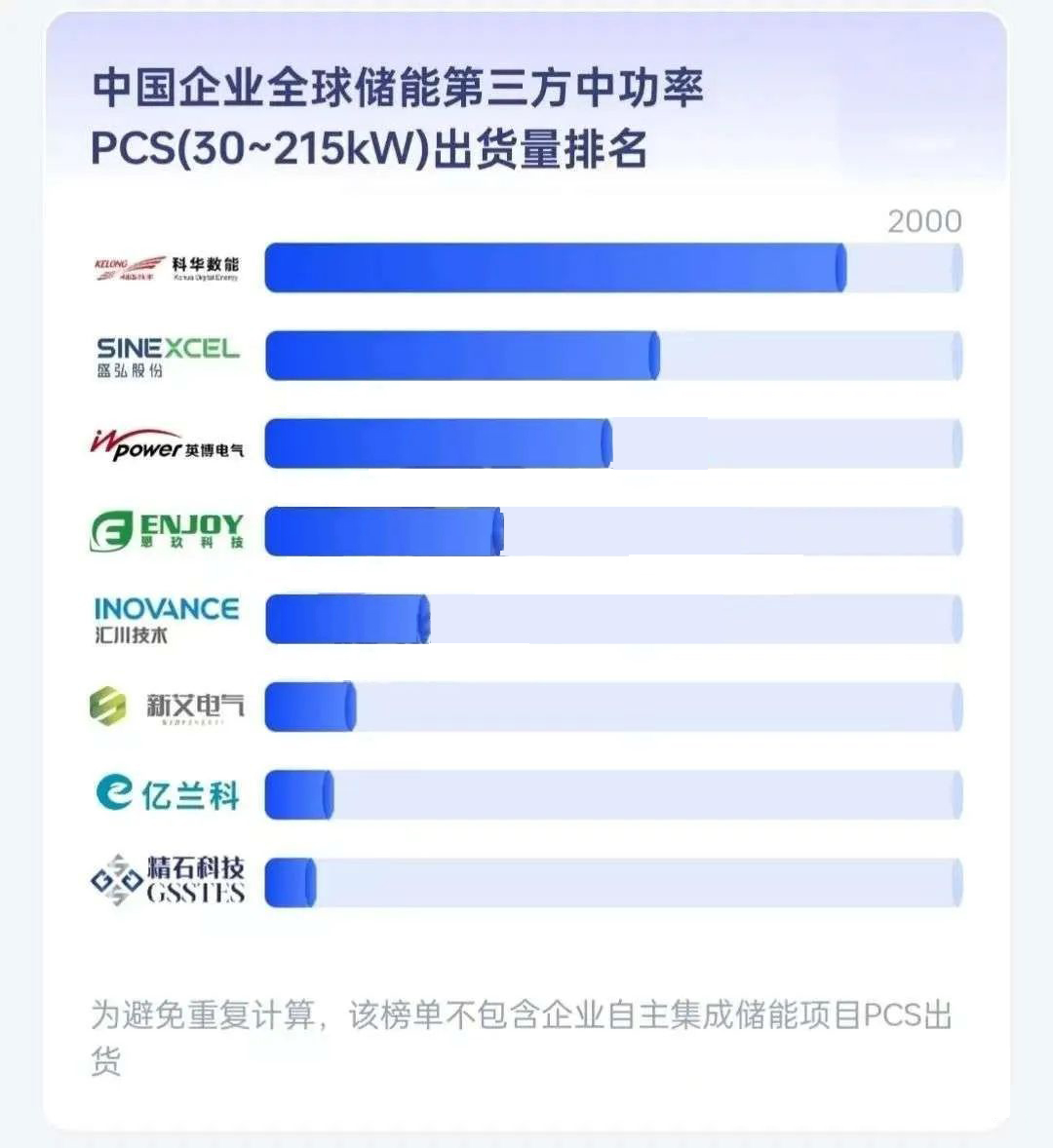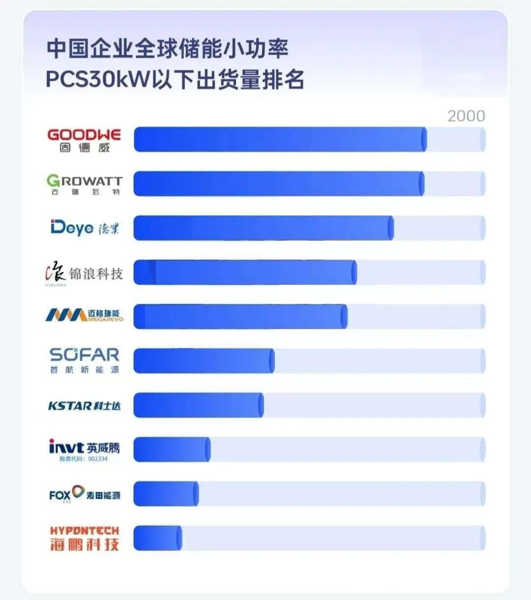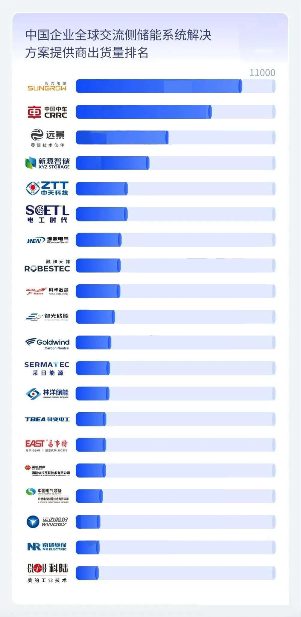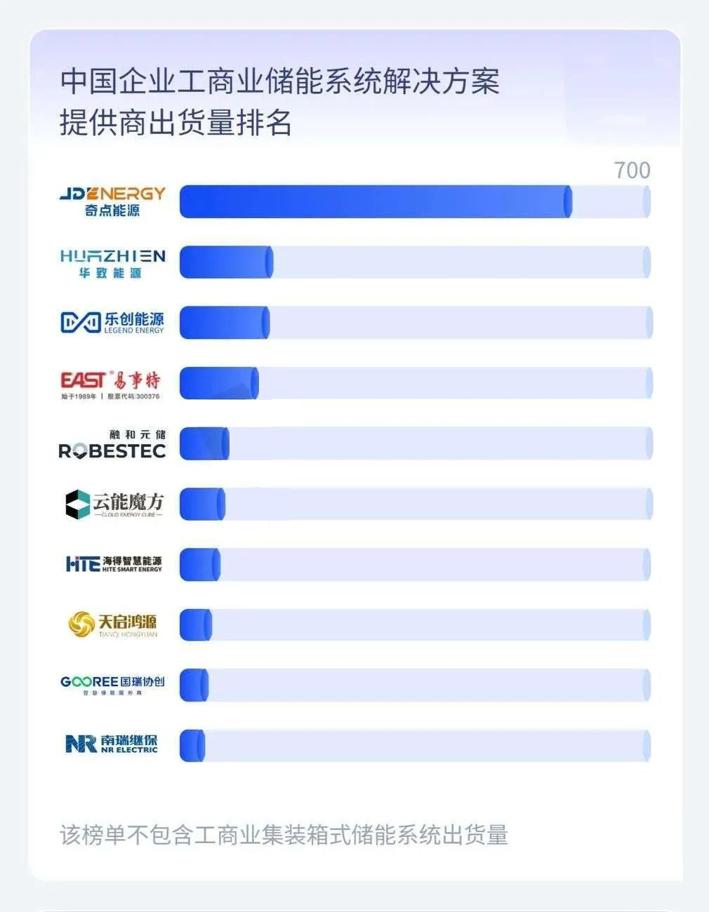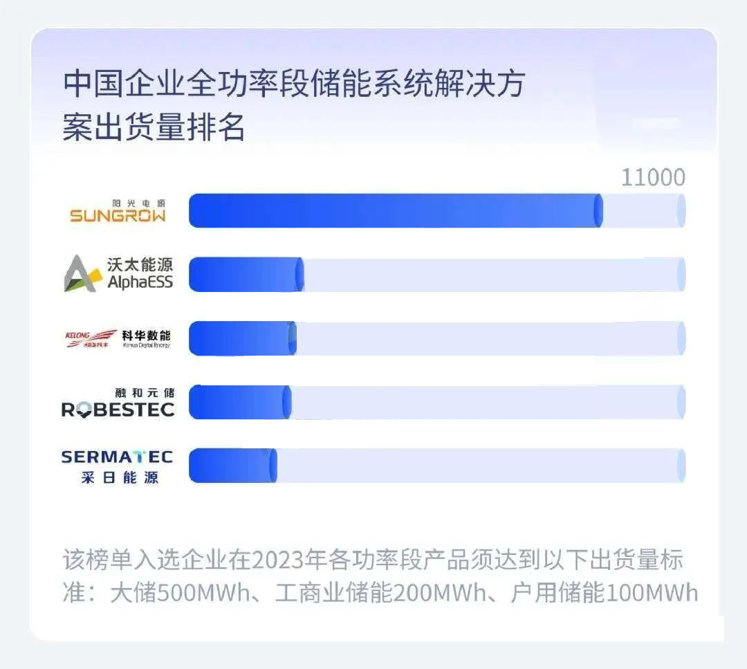 中国企业国内用户侧储能系统解决方案提供商出货量排名
