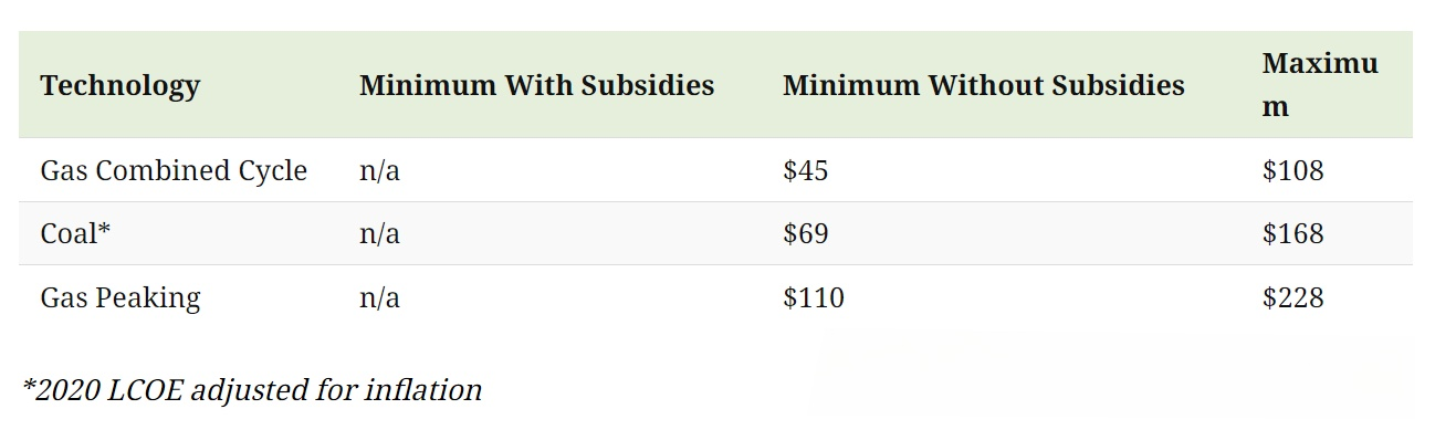 而用于满足峰值电力需求的天然气调峰电厂仍然是最贵的发电技术,其最高成本为每兆瓦时228美元。与去年相比,天然气调峰电厂的最低成本从每兆瓦时115美元下降至110美元。