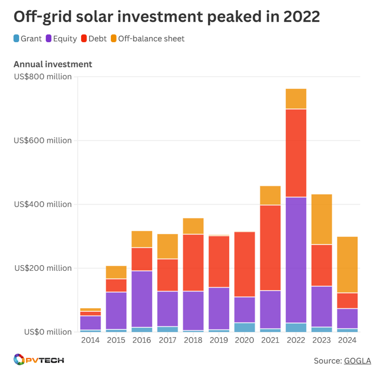 在这种情况下,离网太阳能领域可能会受益于新颖且更复杂的融资机制。GOGLA绩效与投资主管Drew Corbyn去年与PV Tech Power讨论了这一话题。Corbyn表示,只要机制到位,离网太阳能项目的需求仍然非常高。