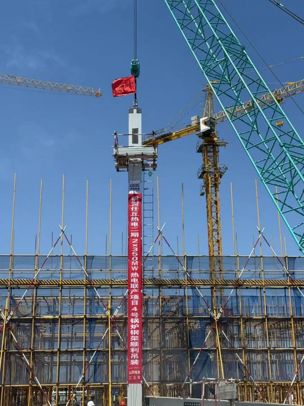 6月21日上午10时58分,任丘热电二期2×350MW热电联产项目完成关键性进展——4号锅炉首根钢架顺利完成吊装就位,标志着该项目正式由土建施工阶段转入设备安装阶段。