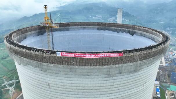 6月25日,由中国能建湖南火电承建的贵州大湾2×660兆瓦低热值(CFB)煤电项目冷却塔筒壁结构顺利到顶。