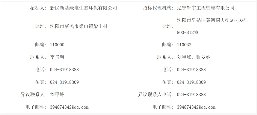 新民市垃圾焚烧发电项目EPC总承包已经由辽宁省沈阳市沈阳市备案。以批准建设,招标人为新民新基绿电生态环保有限公司,工程所需资金来源为自筹。项目出资比例,项目已具备招标条件,现对该项目的新民市垃圾焚烧发电项目EPC总承包进行公开招标。本次招标对投标报名人的资格审查,采用资格后审方法选择合适的投标申请人参加投标。