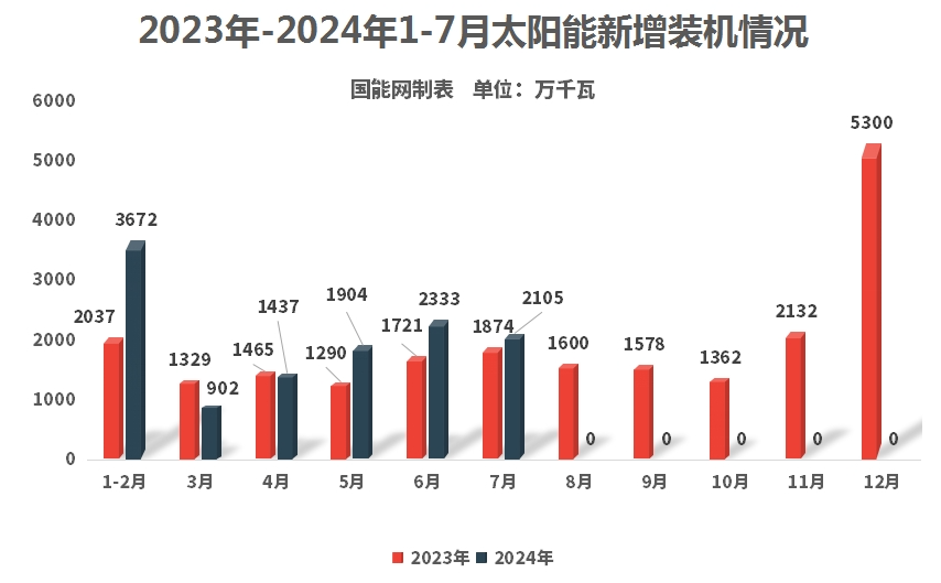 让人感到惊喜的是,今年光伏发展态势良好,对比去年同期的整体情况,截至今年7月比去年同期新增多了2637万千瓦,增幅明显。