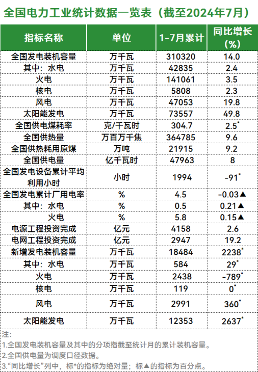 全国新增装机1.848亿千瓦!1-7月份全国电力工业统计数据发布!