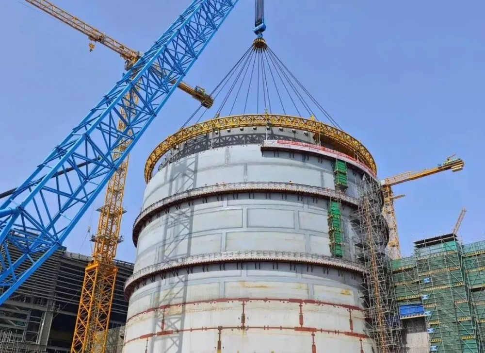 5月6日8时38分,三门核电4号机组核岛屏蔽厂房墙体钢板混凝土结构(SC)第11-12层模块顺利吊装就位,为4号机组安全壳顶封头就位里程碑节点实现打下了坚实基础。