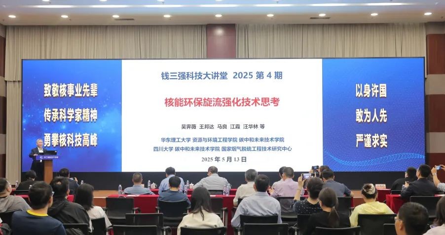 5月13日,原子能院举办第十九期钱三强科技大讲堂,特邀中国工程院院士、华东理工大学教授汪华林作题为《核能环保旋流强化技术思考》的报告。原子能院院长杨红义向汪华林院士颁发主讲嘉宾纪念证书。中国科学院院士叶国安,中核集团首席科学家张生栋、陈东风,四川大学碳中和未来技术学院常务副院长江霞出席报告会,中核集团首席科学家、院科技委主任柯国土主持报告会。