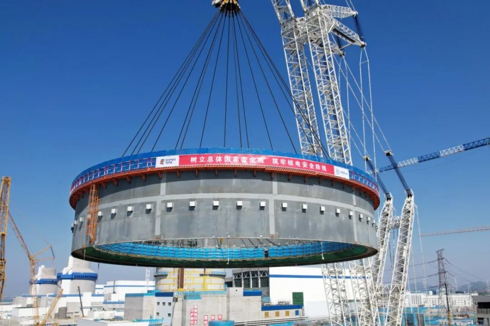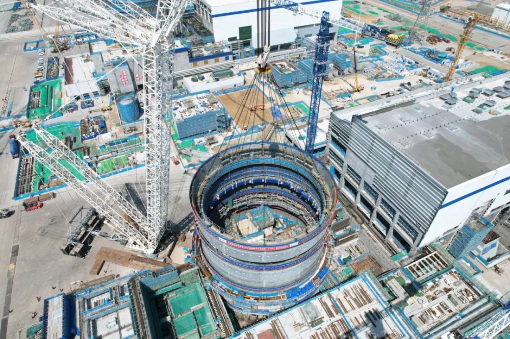 5月18日10时09分,由中核五公司承建的海阳核电4号机组钢制安全壳筒体四环(以下简称“CV四环”)顺利吊装就位,为4号机组核岛反应堆厂房后续施工创造了有利条件,更为后续4号机组环吊可用及顶封头吊装就位夯实了基础。