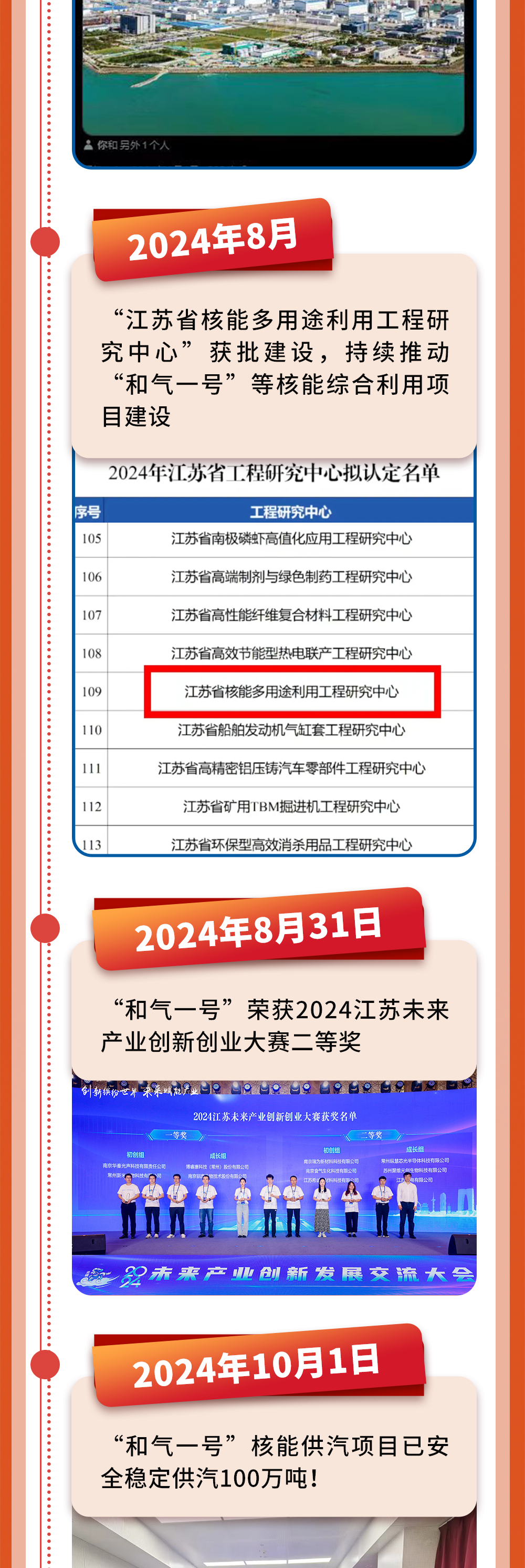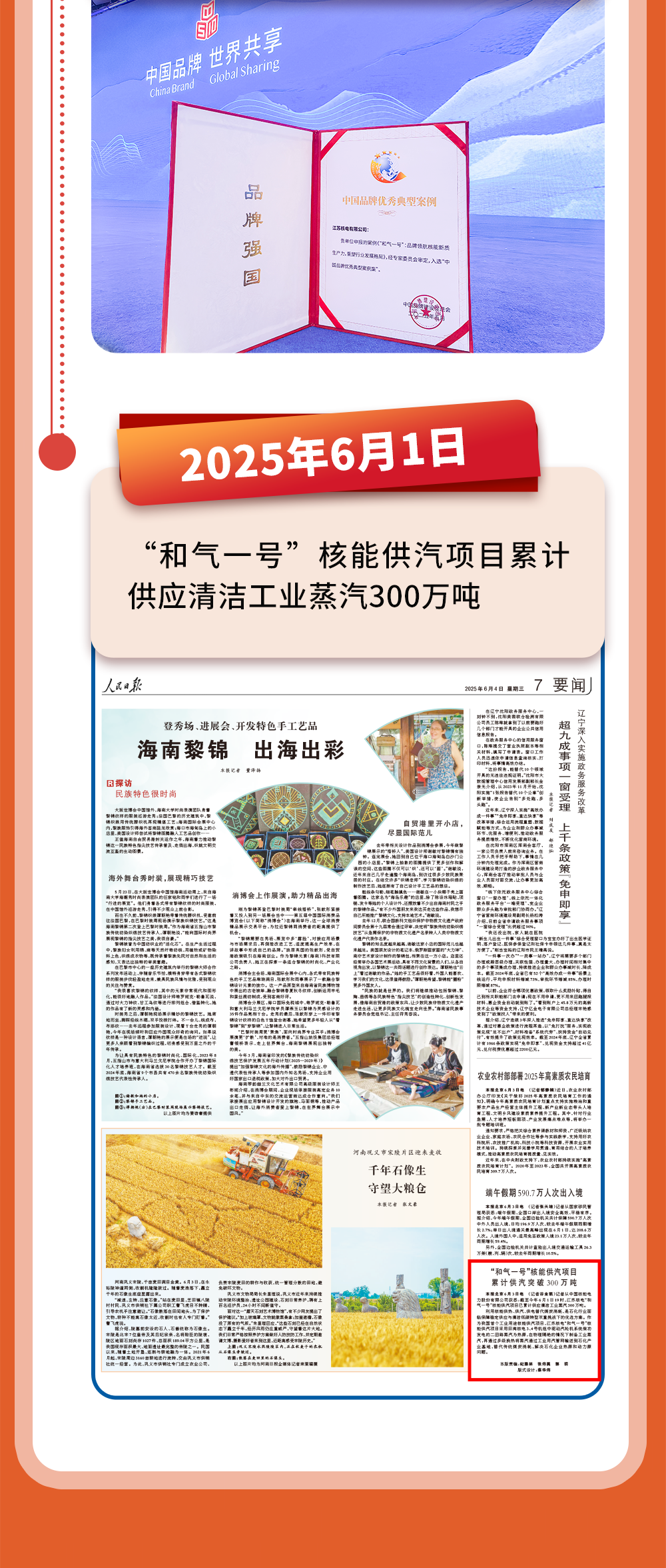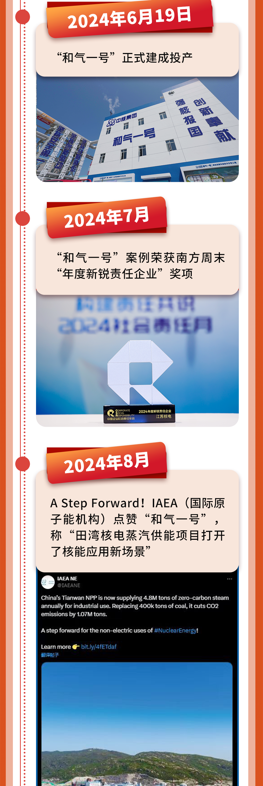 和气一号的成功运行意味着我国核能综合利用在走过单一发电、居民供暖阶段后,进入到工业供汽领域。一年来,和气一号安全稳定运行,通过不断进行经验积累与技术突破,为后续其他核电项目的核能工业供汽之路提供了示范样板。