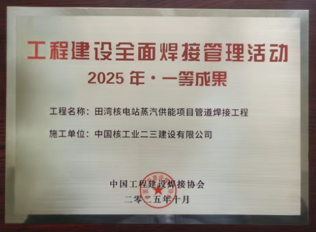 近日,2025年度工程建设全面焊接管理活动成果发布暨经验交流会议公布了2025年度工程建设全面焊接管理活动评价结果,中核二三斩获亮眼佳绩:包括田湾核电站蒸汽供能项目管道焊接工程、霞浦项目主工艺管道焊接工程、福建漳州核电一期核岛安装工程等在内的五项工程荣膺一等成果,四项工程获评优秀成果,共计九项工程荣获国家级荣誉。