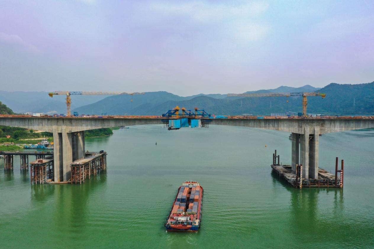 大桥合龙段施工工艺复杂,精准控制难度大。为保证大桥顺利合龙,项目公司组织参建单位多次召开专题会,优化现场资源配置,聚焦混凝土浇筑、预应力张拉等关键工序,严把工程质量关,组织施工单位对合龙段温度、湿度和桥梁结构应力、位移变化进行全方位实时监测,最大程度降低混凝土收缩形变、挂篮变形等因素对梁体线形的影响,保证大桥合龙精度和全桥线形顺畅。同时,通过组织开展劳动竞赛、加大考核激励力度等方式,充分调动参建单位积极性,为加大现场各项要素投入、加速大桥建设进度增添动力。为确保合龙段高空作业安全,项目公司加强安全生产管控,落实安全网格化管理,常态化开展安全巡查,紧盯现场关键工序,强化现场安全技术保障,开展防汛应急演练,多措并举保障大桥建设安全有序推进。
