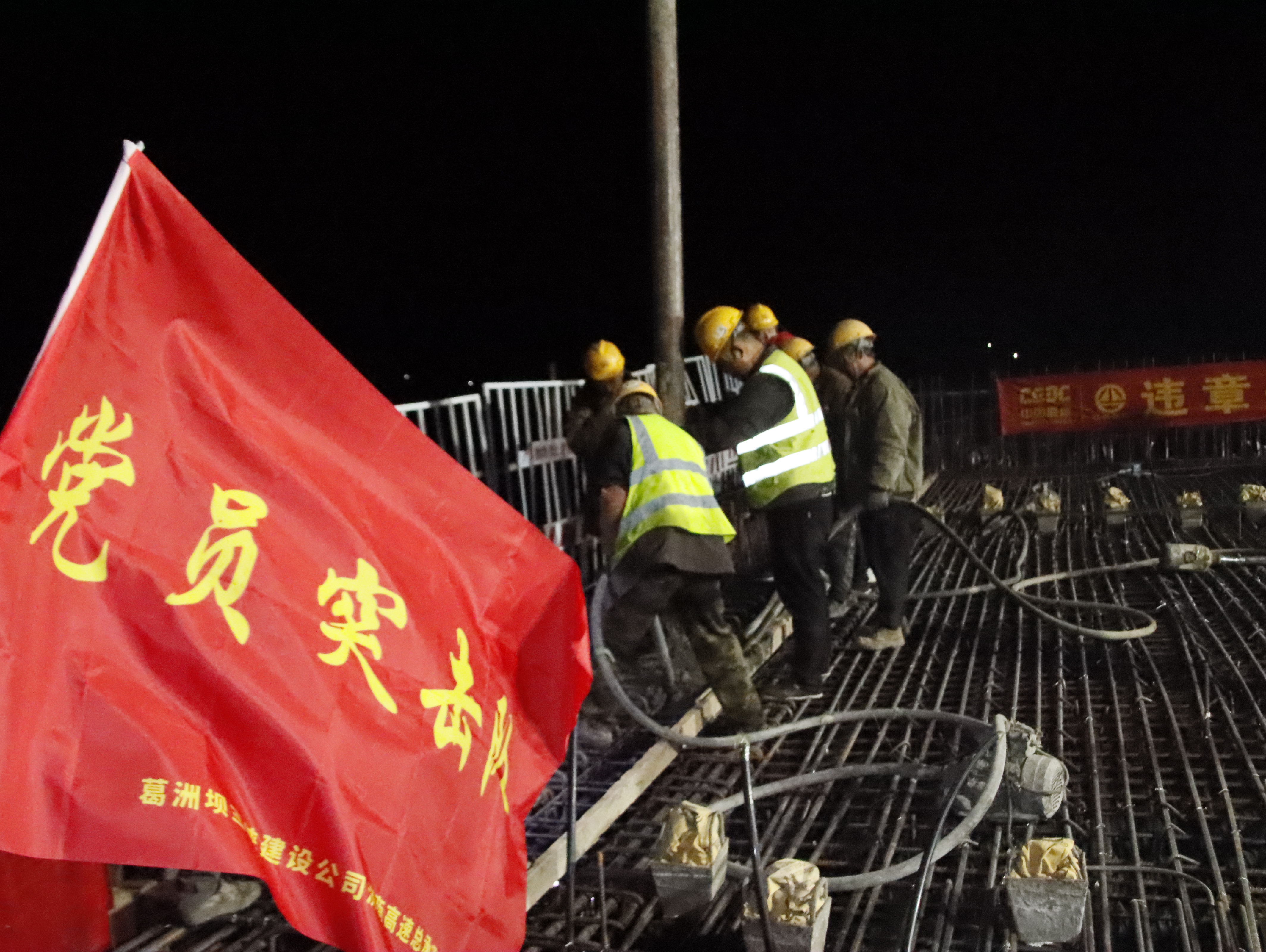 为确保首个边跨安全顺利合龙,项目部精心组织、超前谋划,制定专项合龙方案,系统研判安全风险与技术重难点,动态优化施工组织流程。浇筑前开展全员安全技术交底,细化工艺标准与应急要点;浇筑过程中建立混凝土质量动态监控机制,确保全流程安全受控;针对混凝土温度敏感性难题,组织专人实时跟踪晚间气温数据,精准锁定当日最低温时段实施浇筑,以“温控策略”规避结构位移风险;以劳动竞赛载体,依托“岗区队”创建工作,构建“目标倒逼责任,竞赛激发动能”高效协同机制,强化参建各方工序衔接与资源调配,在抓安全、保质量的前提下,全力推动桥梁贯通工作迈上新台阶。
