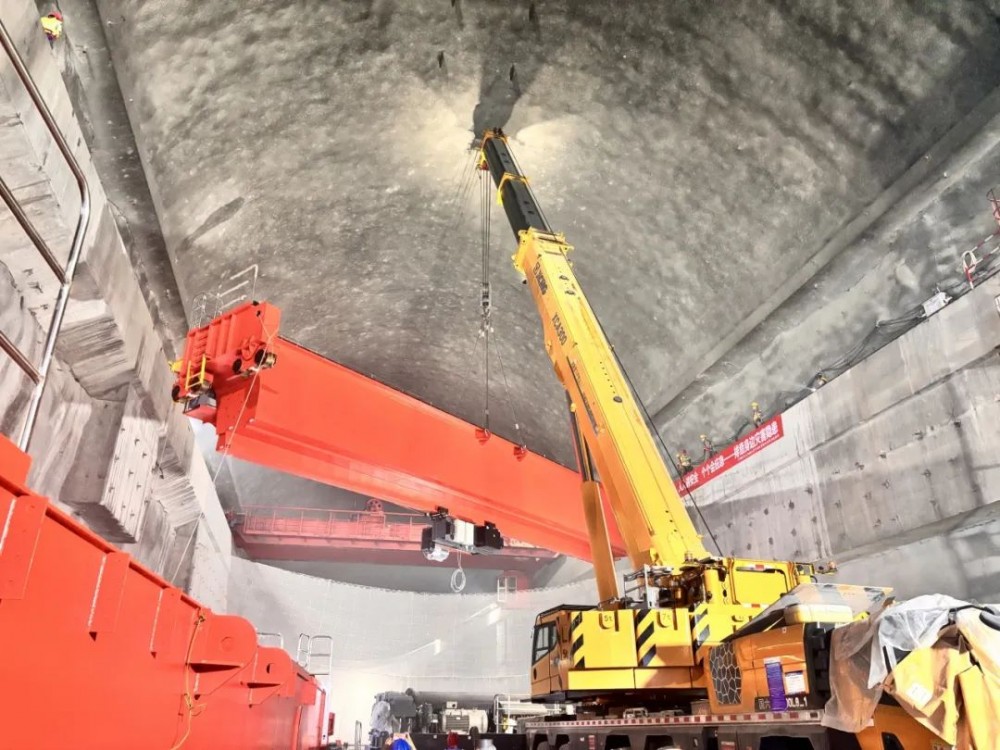 受地下厂房桥机安装吊装空间限制,给吊装工作带来了极大地挑战,同时,吊装过程中需要精准控制,稍有偏差就可能导致设备损坏甚至安全事故。从方案设计到设备选型,从吊装工艺到整体布局,公司项目部技术人员每一个环节都经过了反复推敲和精心准备,以确保吊装工程安全有序进行。全体施工人员克服地下洞室开挖、爆破造成的噪音及粉尘等不利环境影响,凝心聚力,安全、高效的完成2台桥式起重机的吊装工作,赢得业主、监理单位的一致认可。