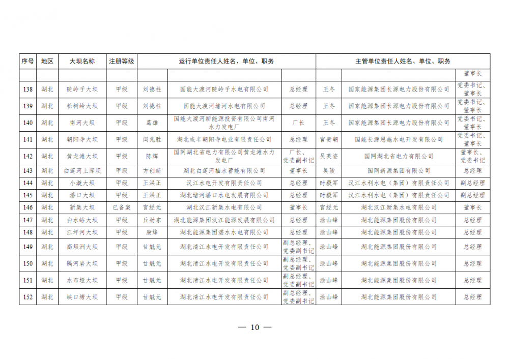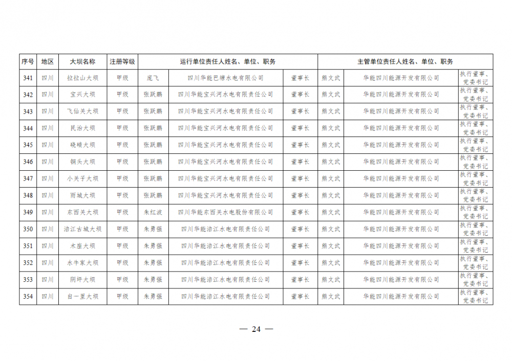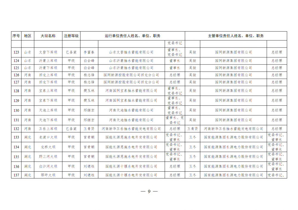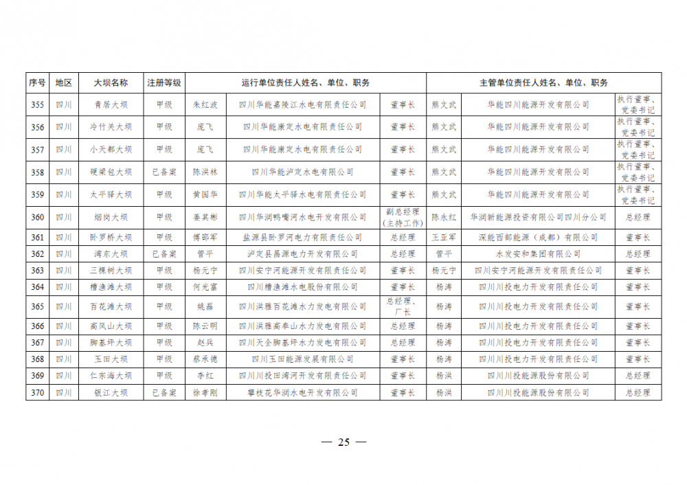 2025年全国注册登记和备案水电站大坝运行单位和主管单位安全责任人名单