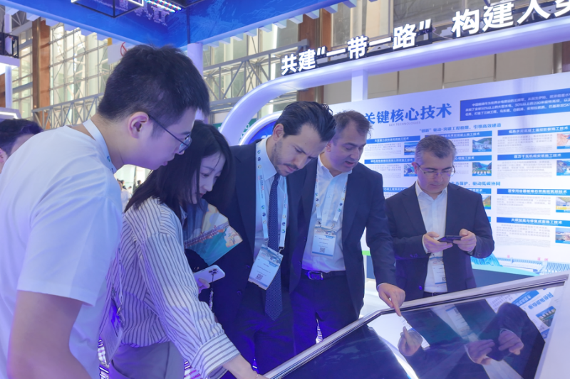 本次大会特设技术成果交流宣传展,中国能建以“坝纳百川 水润万物”为主题布设展台,通过主题展板、互动大屏、专题片等形式全方位展示在推动水利坝工事业高质量发展、服务国家能源转型升级中的创新理念和丰硕成果,受到与会嘉宾的广泛关注。