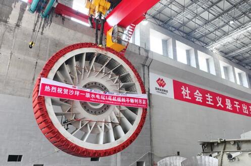5月22日,大渡河沙坪一级水电站首台机组转子精准吊装至工位,这是继上游相邻的枕头坝二级水电站首台机组转子成功吊装就位后,相继实现的又一关键节点目标,创造了国内首例同一流域成串成组同步开发的相邻两座大型水电站,同期相继完成首台发电机组转子吊装。