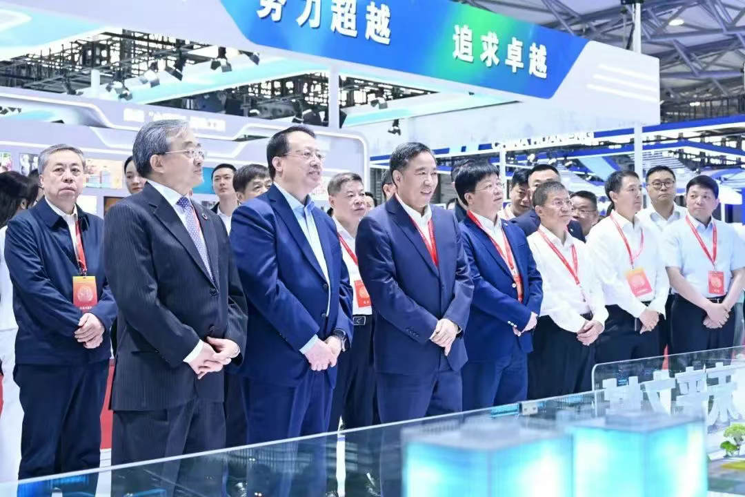 6月5日,2025上海国际碳中和博览会在上海开幕。上海市委副书记、市长龚正,中国气候变化事务特使刘振民,国家发展改革委体制改革综合司司长王善成出席开幕式并致辞。上海市委常委、常务副市长吴伟主持开幕式。中国能建党委书记、董事长宋海良应邀出席开幕式并发表题为《以融合创新为笔,以绿色低碳为墨,为绘就“双碳”蓝图贡献能建智慧与力量》的主旨演讲。