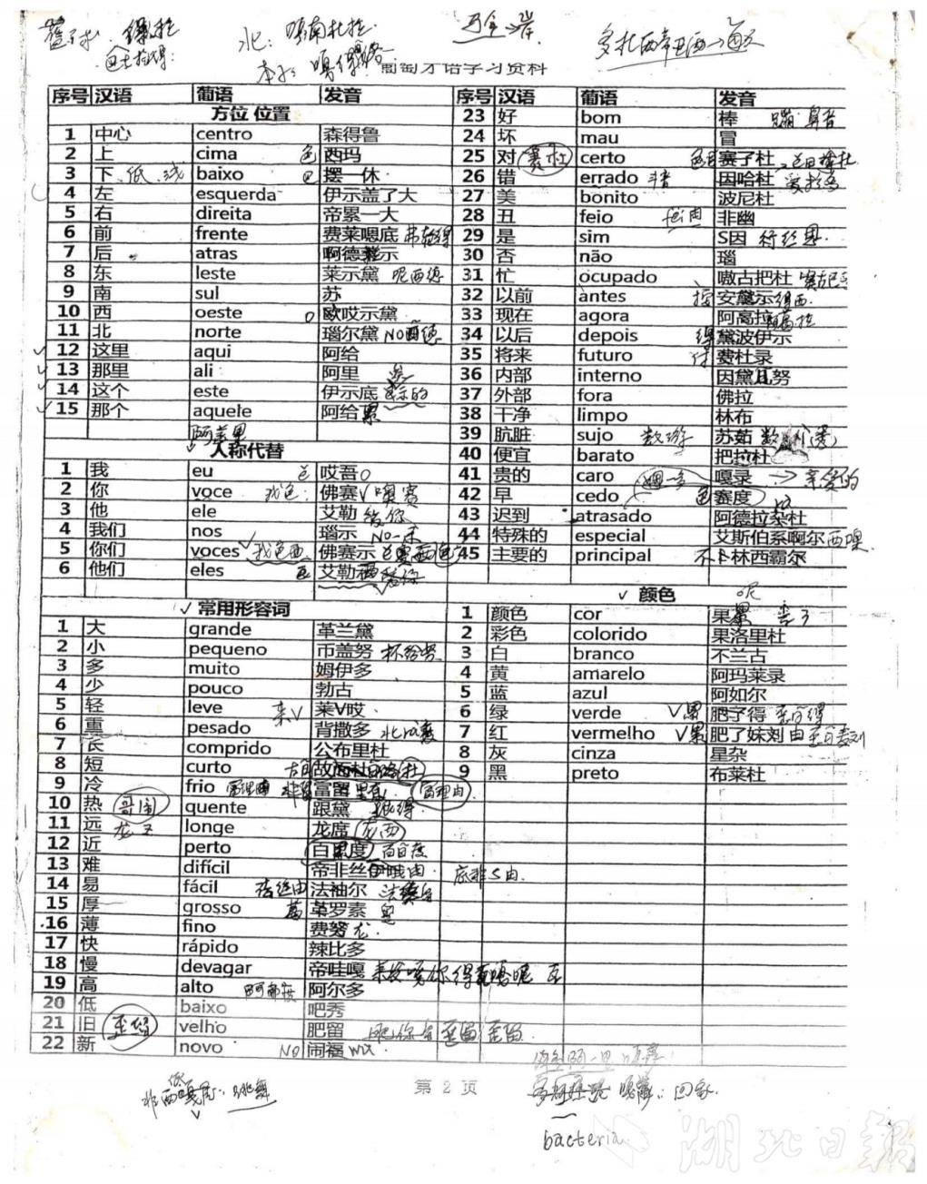 他在身上揣着一个小本子,每次遇到不懂的,就向当地工人请教,并认真记录并标注。每晚睡前,他都会回顾当天所学的单词和句子。