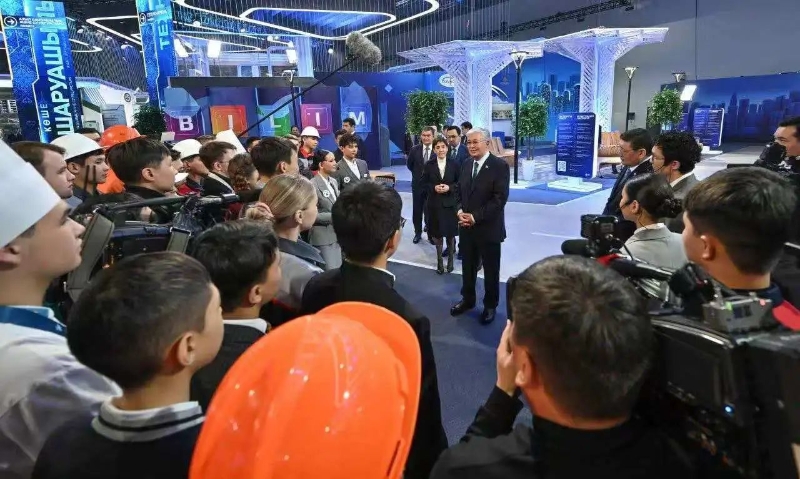 哈萨克斯坦总统托卡耶夫视察哈萨克斯坦“职业发展年”活动中的中国能建展台