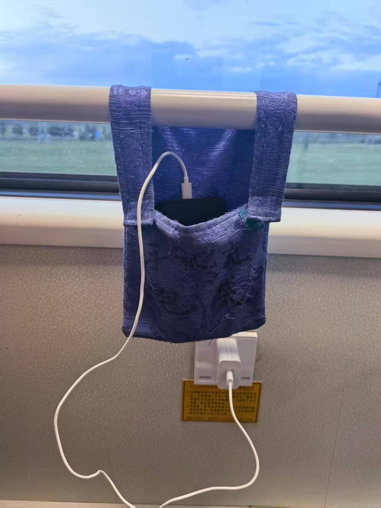 不同于普速列车硬座、硬卧车厢,普速列车的软卧车厢过道上不设置小桌,旅客为手机充电时无处放置。中国铁路呼和浩特局集团有限公司呼和浩特客运段哈尔滨车队的职工们集思广益,将列车上的废旧座椅套清洗消毒,“爆改”成便民充电袋,悬挂于充电口附近的扶手上。(李开蒙 宋紫剑)