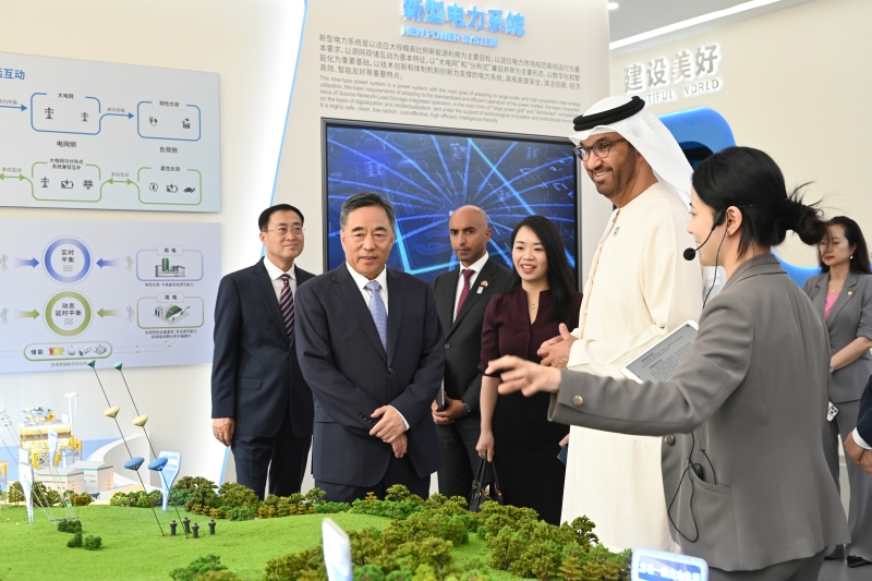 会谈前,苏尔坦·贾比尔在宋海良陪同下参观了中国能建企业展厅。
