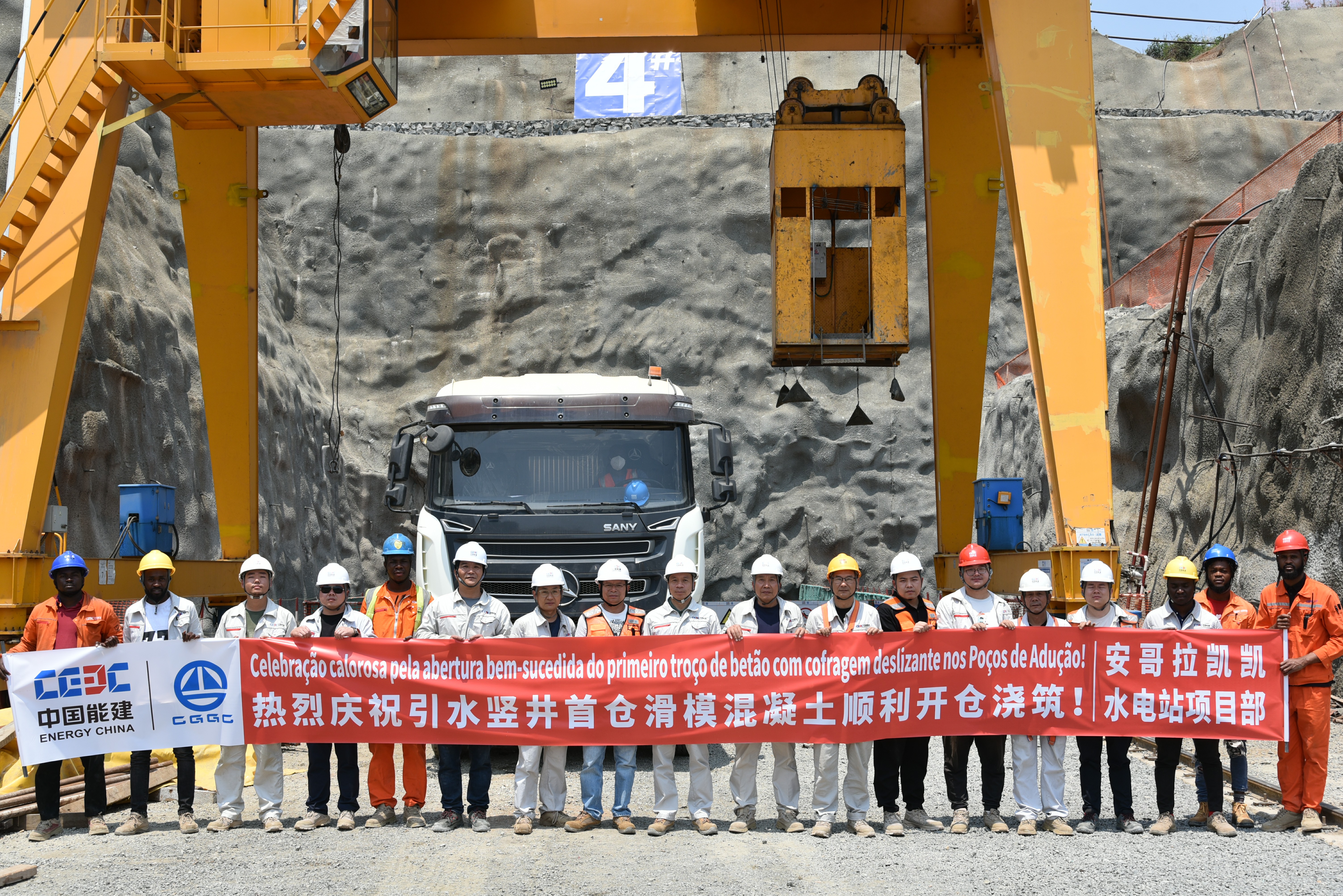 当地时间10月4日上午9时,随着第一车混凝土入仓,中国能建葛洲坝集团承建的安哥拉凯凯水电站4号引水竖井滑模首仓混凝土启动浇筑。