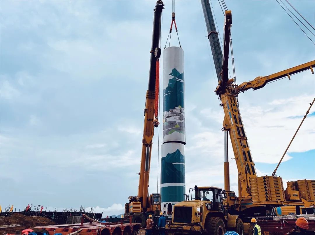 大唐云南平坝东96兆瓦风电项目首套塔筒顺利吊装