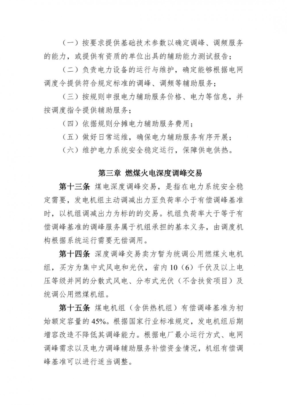 深度调峰交易卖方暂为统调公用燃煤火电机组,买方为集中式风电和光伏,省内10(6)千伏及以上电压等级并网的分散式风电、分布式光伏(不含扶贫项目)及统调公用燃煤机组。