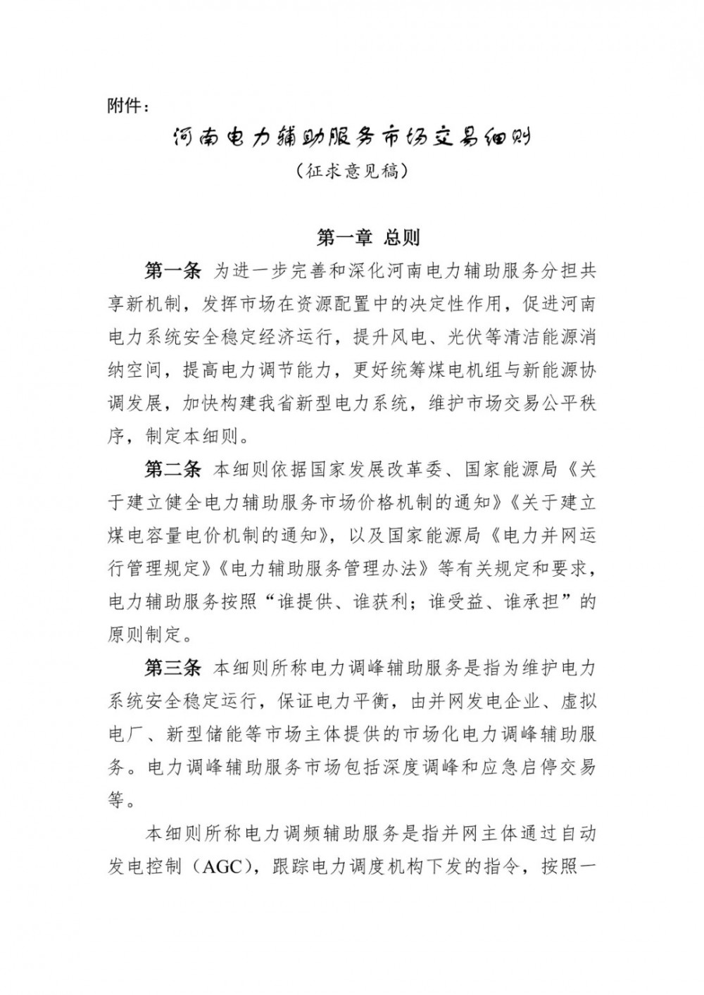 8月28日,河南能源监管办发布关于征求《河南电力辅助服务市场交易细则 (征求意见稿)》意见的通知。