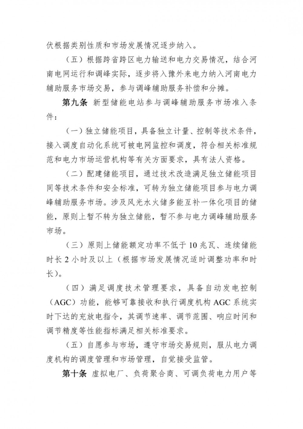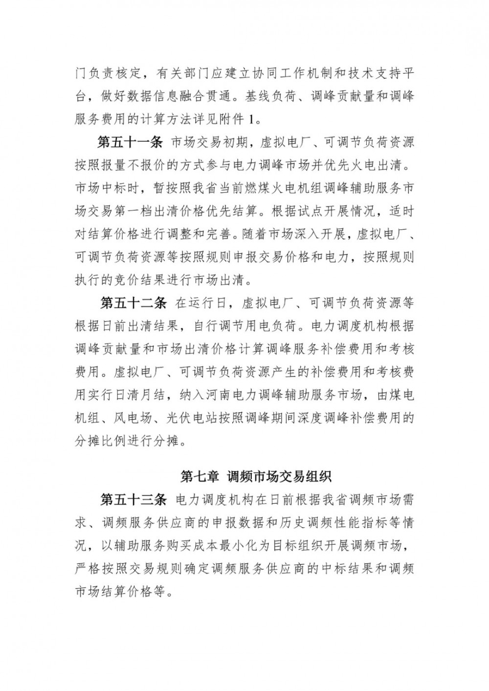 (五)根据跨省跨区电力输送和电力交易情况,结合河南电网运行和调峰实际,逐步将入豫外来电力纳入河南电力辅助服务市场交易,参与调峰辅助服务补偿和分摊。